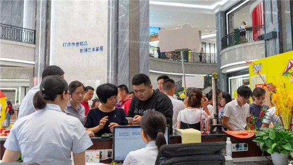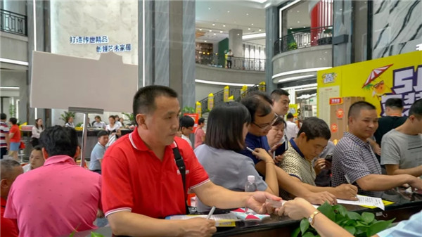 小编随机采访了几位在排队交定金的业主,他们纷纷表示:“新展厅品类齐全,每款产品都在新展厅展示出空间效果,还有礼品抽奖……”