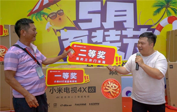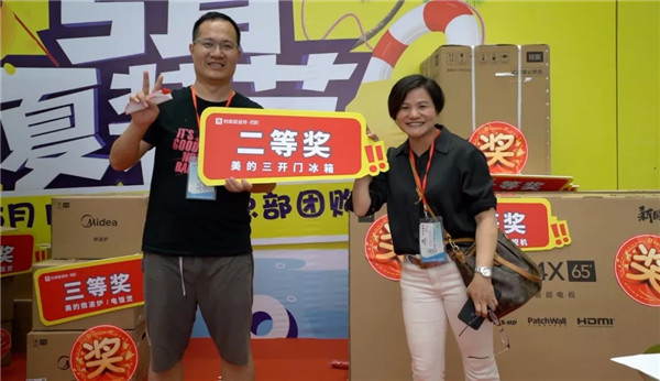 工厂底价来袭,砸金蛋送好礼,幸运抽奖,一系列的优惠及礼品,让业主不仅选到心仪的产品,还被抽奖嗨到停不下来。抽奖环节将现场氛围推向高潮,美的双开门冰箱、小米65寸液晶电视、美的三开门冰箱,美的微波炉/电饭锅等奖品一一被抽走,全场欢笑声不断。