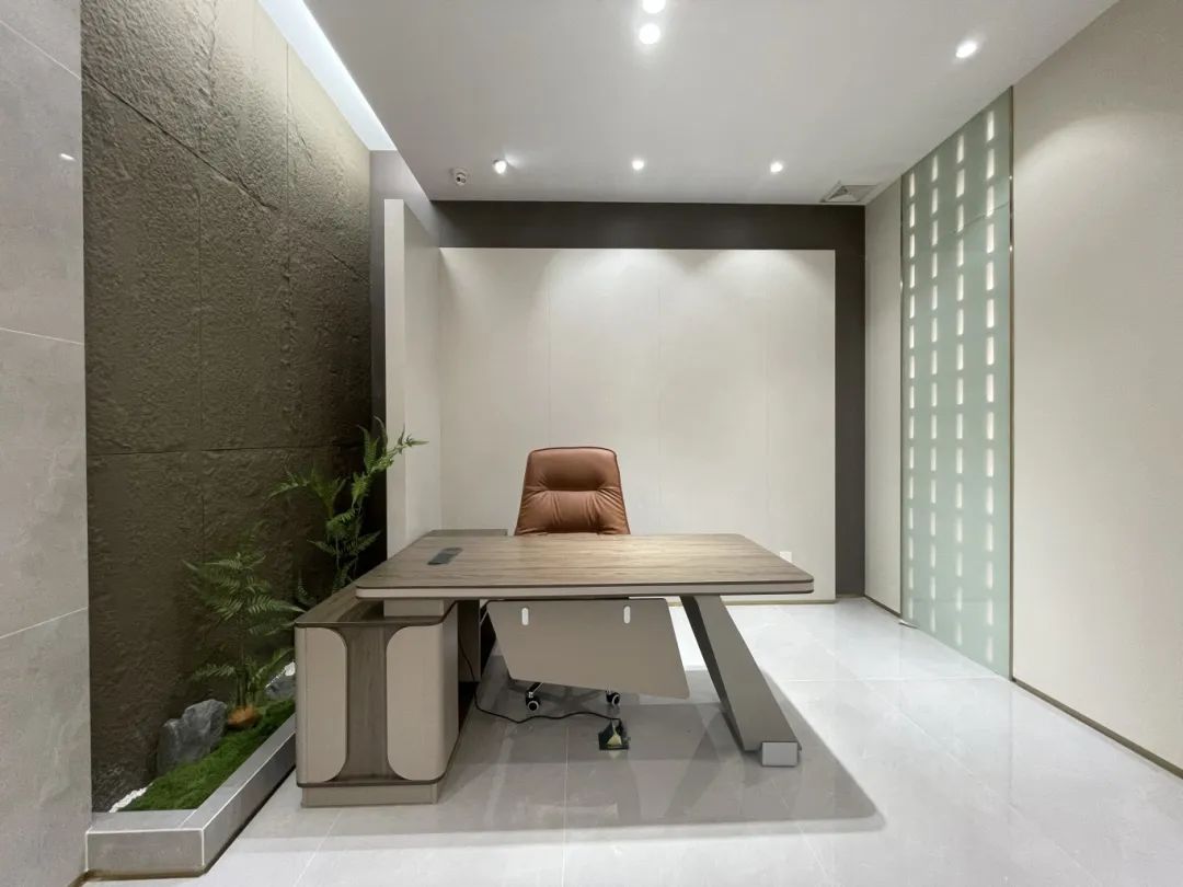 布局多回旋,隔而不断,通透与私密并存,延续暖灰主色调,基调沉稳,为了最大限度利用空间,借助洽谈区开阔的空间拉出范围,成为最舒适最灵活的功能区域。